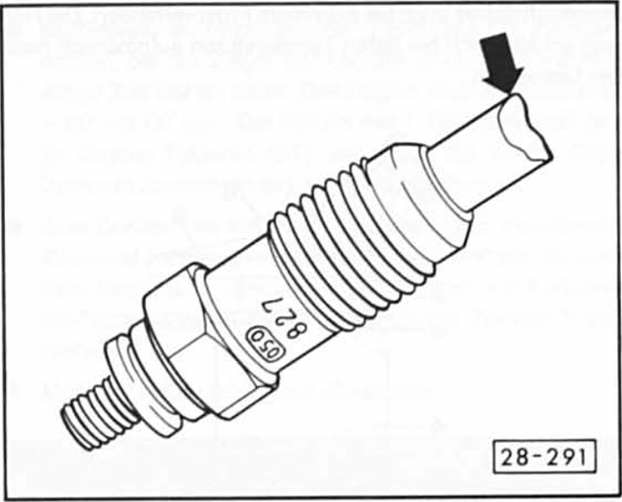 Werden im beanstandungsfall derartige glühkerzen gefunden - p f e i l - , genügt es nicht, diese nur zu ersetzen. Es muß eine überprüfung der einspritzdüsen auf strahl, schnarren, druck und dichtigkeit erfolgen (werkstattarbeit).